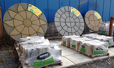 We stock natural paving as well as concrete paving slabs. We offer a wide selection of colours and sizes, including our patio circle kits available for delivery. And our natural stone is Brett approved Indian sandstone of the highest quality available in four different sizes and three different colours.